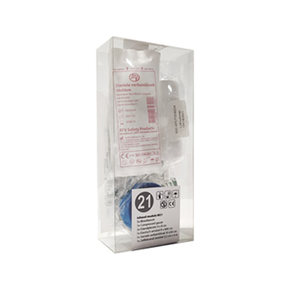 Met het toevoegen van deze module aan de verbandkoffer 600.VK0044, zorgt u ervoor dat deze weer volledig up to date is. Zo voldoet de koffer weer aan de laatste richtlijnen van het oranje kruis.
