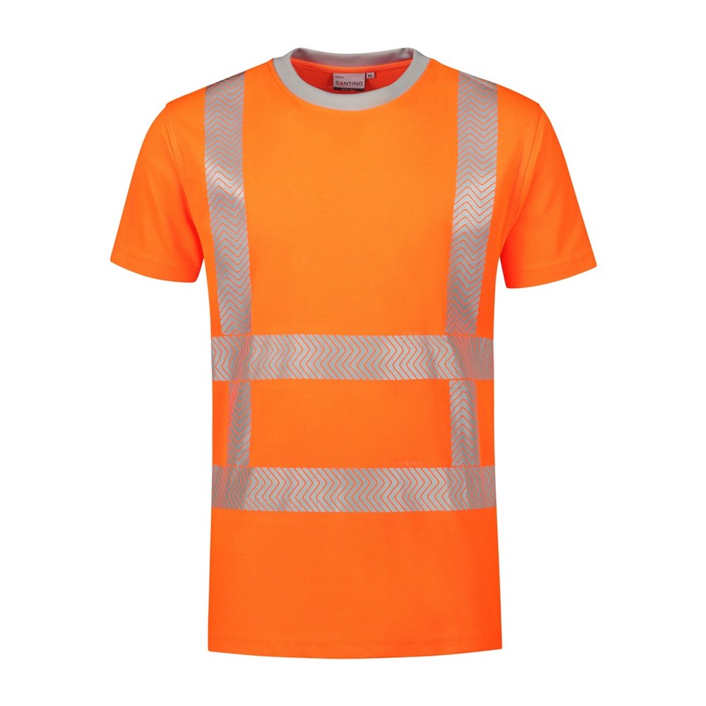 T-shirt, 100% polyester, 220 gr/m², piqué, regular fit met ronde hals, 1x1 rib kraag in contrast kleur, fluoriserend veiligheids T-shirt met contrasterende kraag, voorzien van getransfereerde gesegmenteerde zilver reflectie tape in RWS configuratie. Gecertificeerd volgens EN ISO 13688/EN ISO 20471/EN 13758-2:2003+A1:2006 (UPF50+). Voldoet aan de RWS voorschrift.